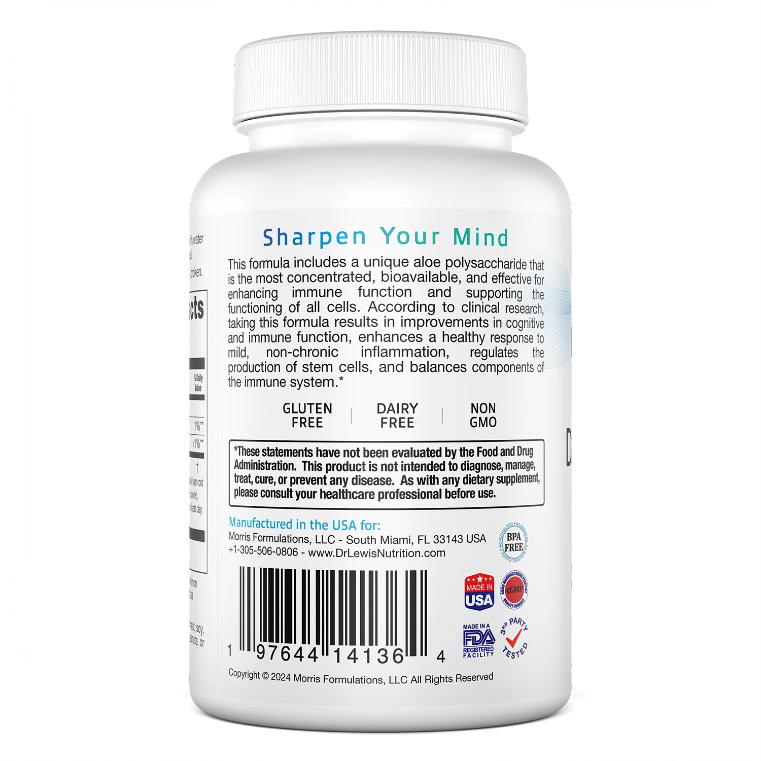The ingredients in this formula provide hundreds of key polysaccharides, vitamins, minerals, fatty acids, amino acids, elements, metabolites, and cofactors to support all of the body's cells. This unique aloe polysaccharide complex is the most concentrated, bioavailable, and effective for enhancing overall immune function.