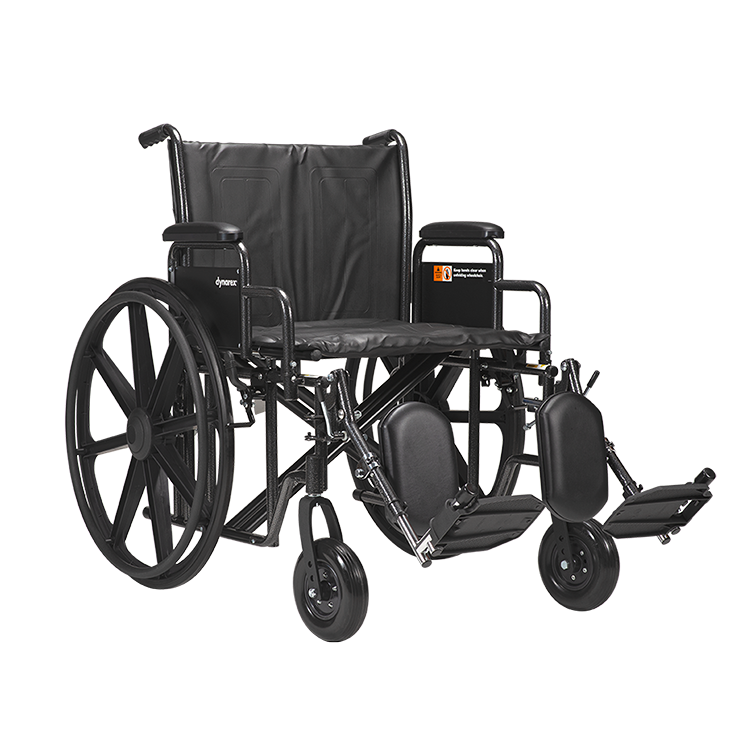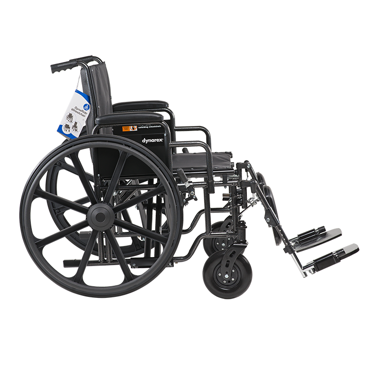 The Dynarex Bari+Max Wheelchair with Elevating Leg Rest provides reliable support and improved mobility for larger users. The heavy-duty steel frame with dual cross brace for extra support allows patients to feel secure and stable. The Wheelchair is equipped with tool-free adjustable elevating leg rests with padded calf pads, and detachable arms with padded arm rests.