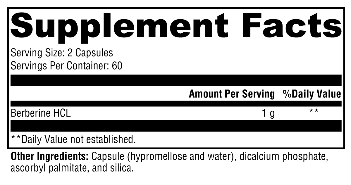 Berberine is a naturally occurring plant alkaloid broadly used in traditional ayurvedic and Chinese herbal practices with demonstrated benefits for blood glucose and lipid metabolism. In addition, it is used to support gastrointestinal and immune health.*