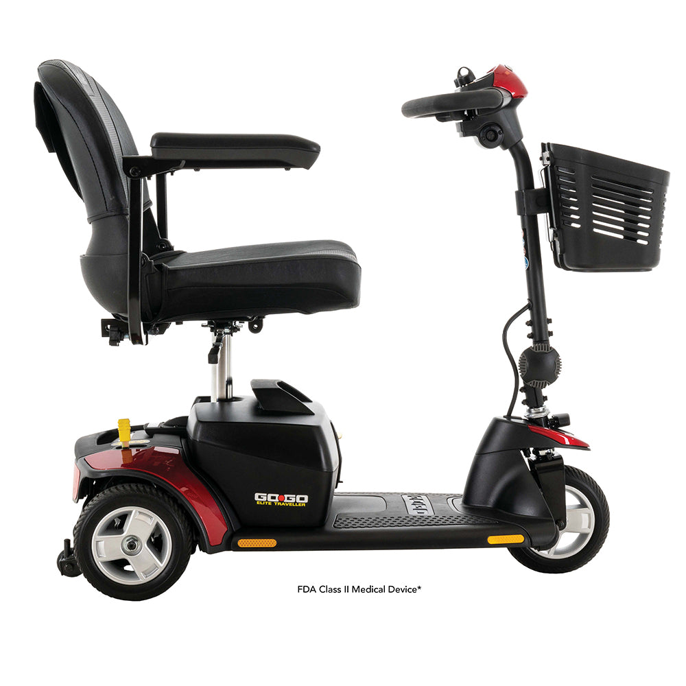 The compact design of the Go-Go Elite Traveller® allows you to easily maneuver in tight spaces while providing stable outdoor performance. With a 300 lb. weight capacity, a charger port in the tiller, one-hand feathertouch disassembly and maximum speeds up to 4 mph, it’s easy to go where you want to go!