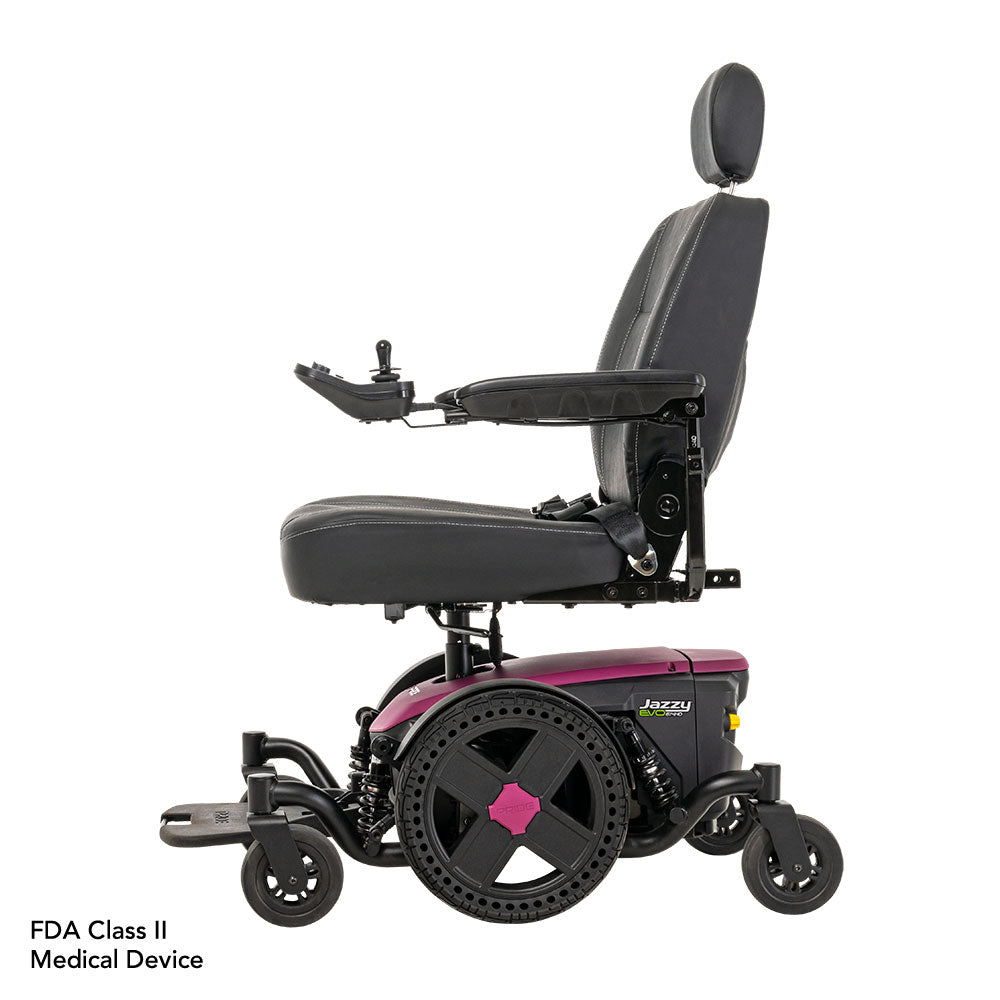 - Depth-adjustable, memory foam high-back seat with heavy duty, single seat post allows user to swivel (max. seat size of 24”x 24” on the Jazzy EVO 614HD)