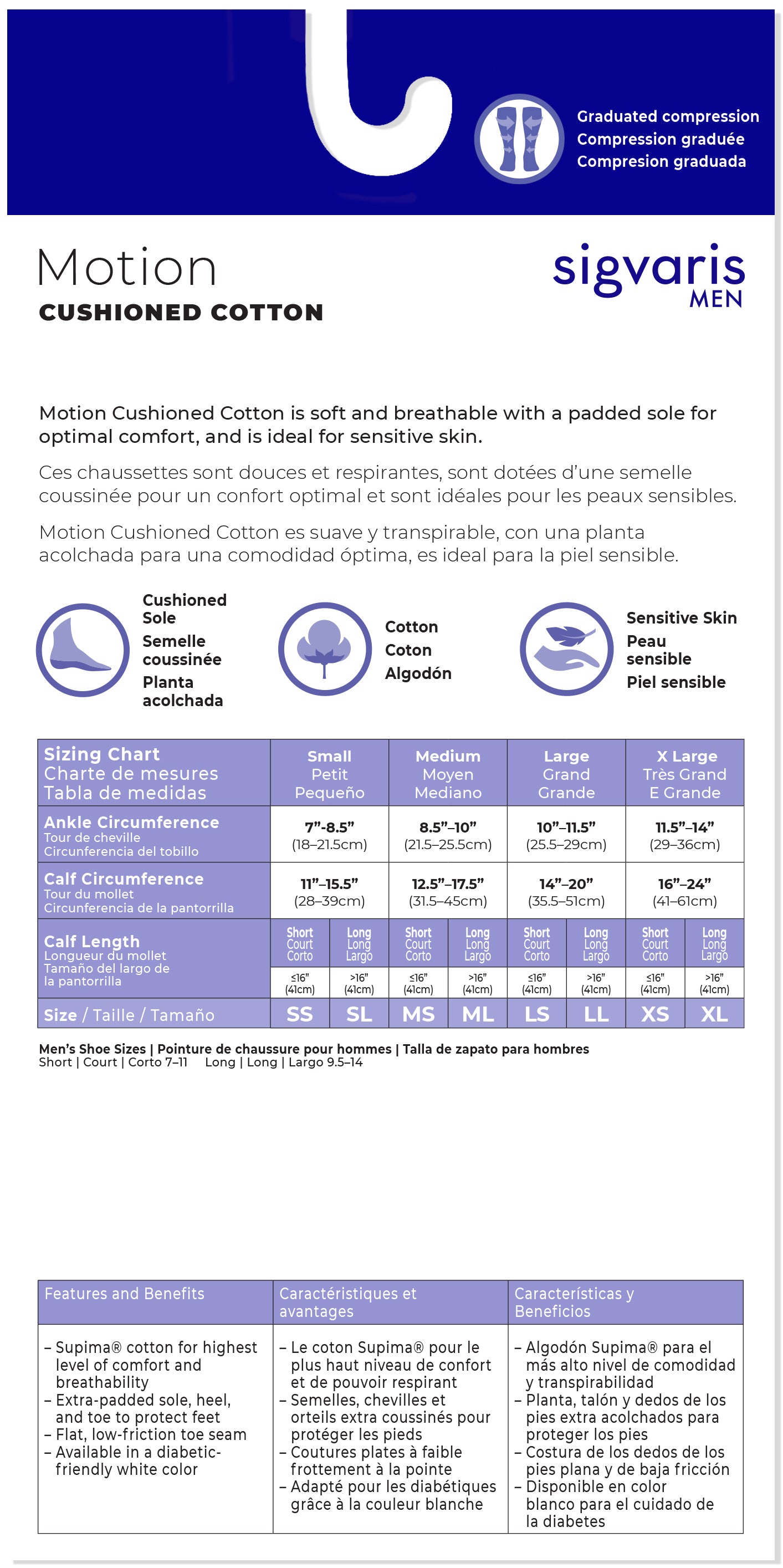 Motion Cushioned Cotton is soft and breathable with a padded sole for optimal comfort, and is ideal for sensitive skin.