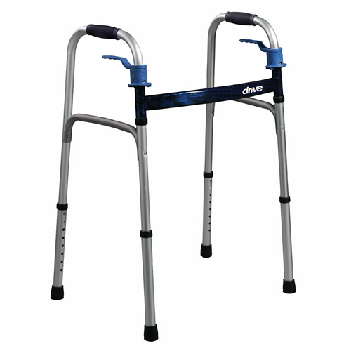 Trigger release feature for opening and closing allows users to close the walker without removing their hands from the handle and is ideal for individuals with limited finger dexterity