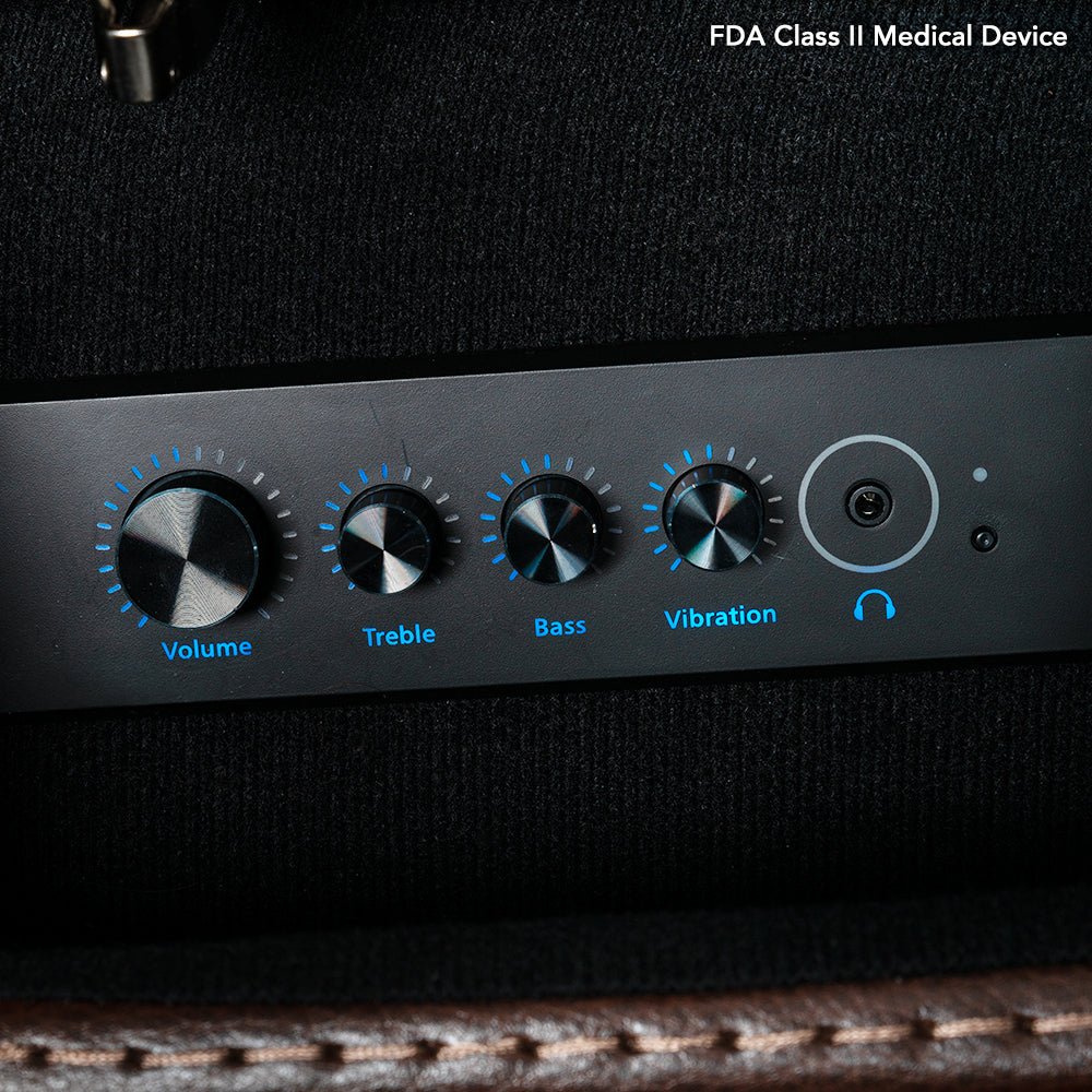 - IMMERSIVE AUDIO! Speakers are built into this chair and connect to TV/Radio/Media via Bluetooth® tech. (Audio controls are located in the armrest)