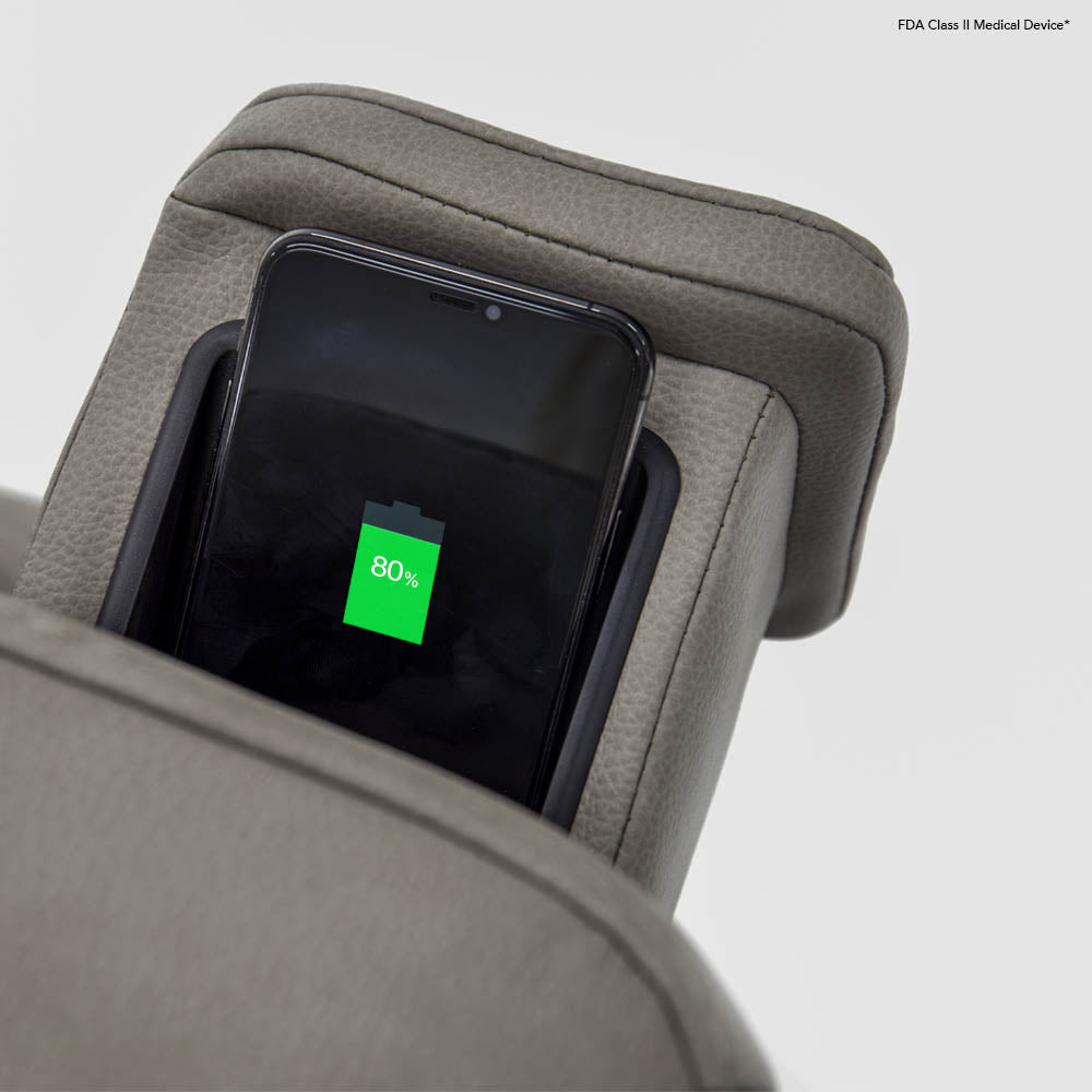 - Easily accessible heat and massage buttons on the inside of the left armrest