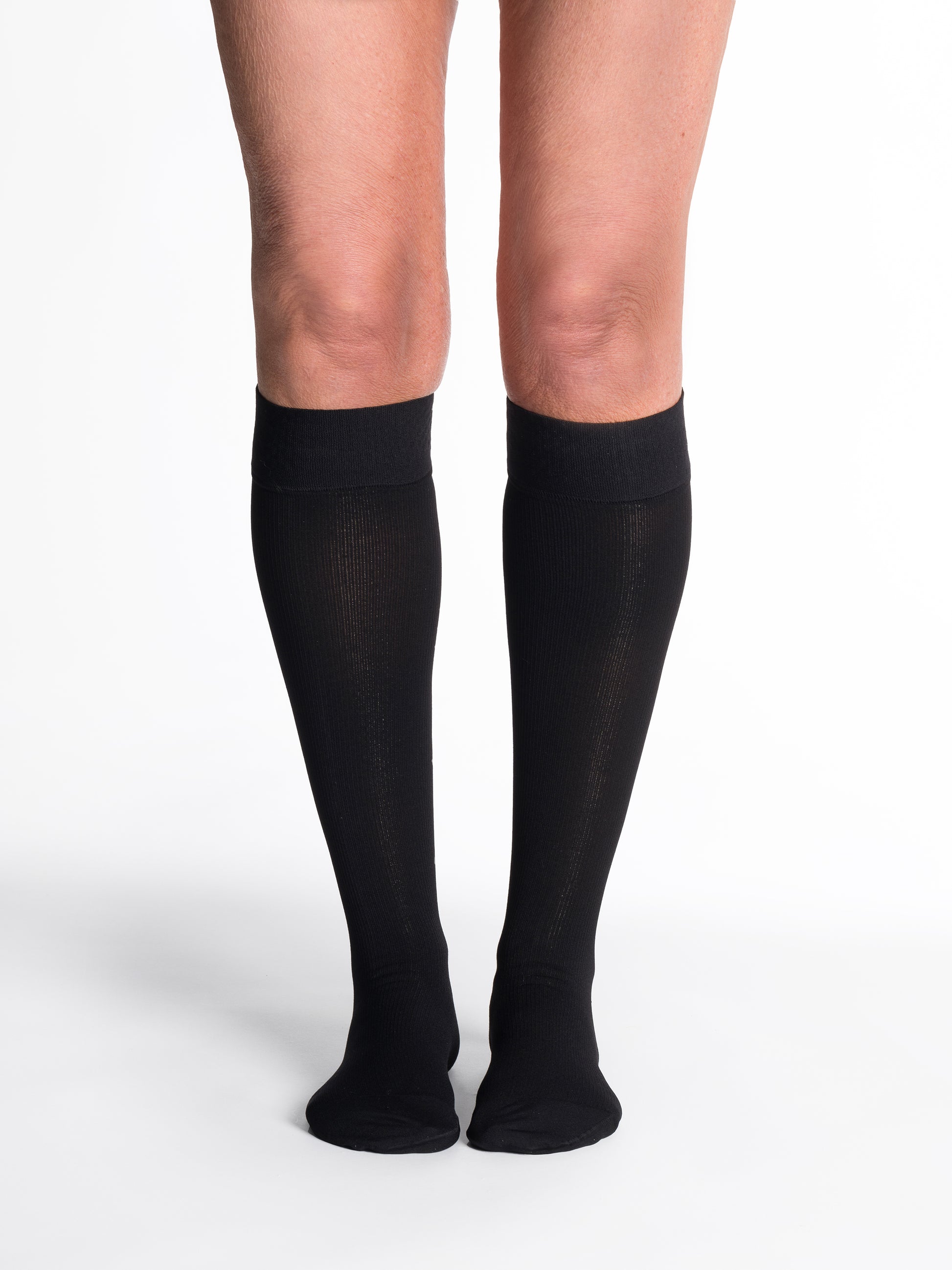 - Double-covered inlay yarns provide comfort and allow product to easily glide on and off
